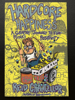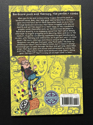 When you listen and scream along to your favorite punk or hardcore band, does that help your mental health or reinforce your frustrations? Artist Reid Chancellor leads us on a tour through hardcore musicians that have struggled with mental health—and written about it in their songs. In this standalone graphic novel, Chancellor picks up the discussion he began in Hardcore Anxiety, in an engaging narrative that will be deeply relatable to anyone grappling with identity, fear, and loss in the mosh pit. If you're considering supplementing your headbanging sessions with therapy and medication, or if you just want to read about the music scene you love from a unique angle, Hardcore Happiness can help you find your way. Punk opens the door to speaking out about mental health issues, but it doesn’t always encourage you to walk through the door and get help. Chancellor props that door open with humor and vulnerability, asking the question, “Why aren’t there more hardcore songs about seeing your therapist?” That’s a song we all might need to hear.